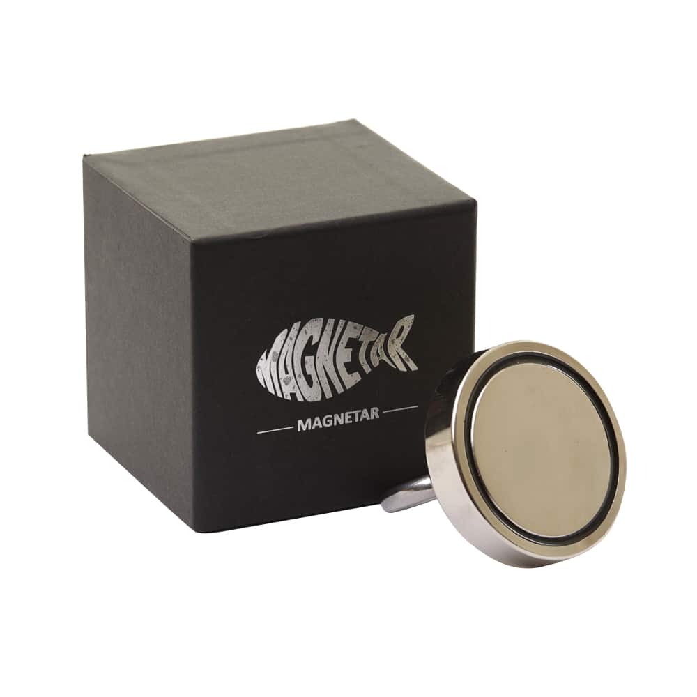 Unsere Angelmagnete bestehen aus Neodym. Magnetar-Magnete behalten ihre magnetische Zugkraft über Jahrzehnte hinweg bei, mit nur 1% Verlust alle 100 Jahre (bei richtiger Lagerung, Pflege und Schutz). Deshalb verkaufen wir einen der besten Angelmagnete auf dem Markt.